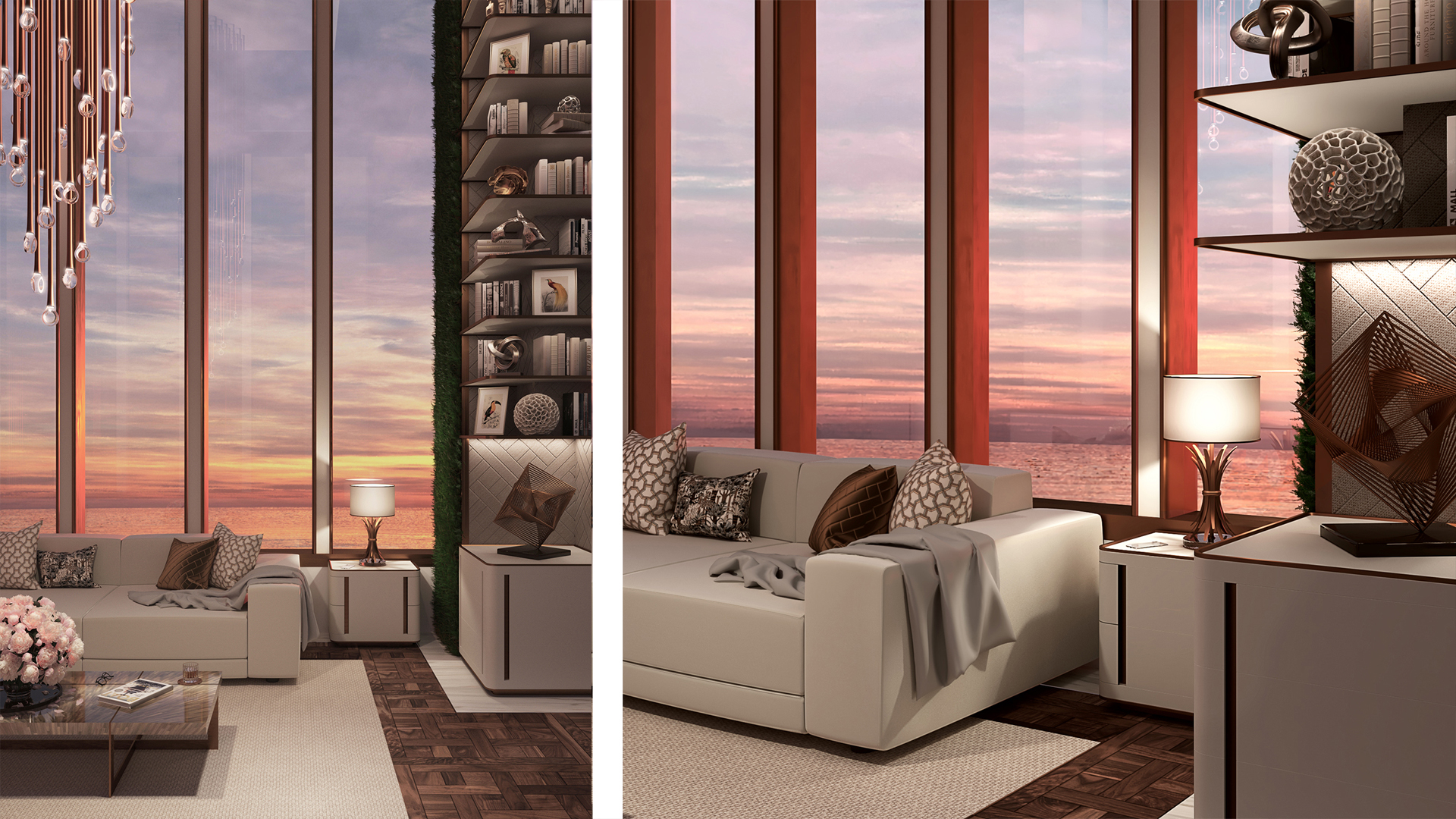 Design d’intérieur en collaboration et rendus d’un projet de salon type yachting.